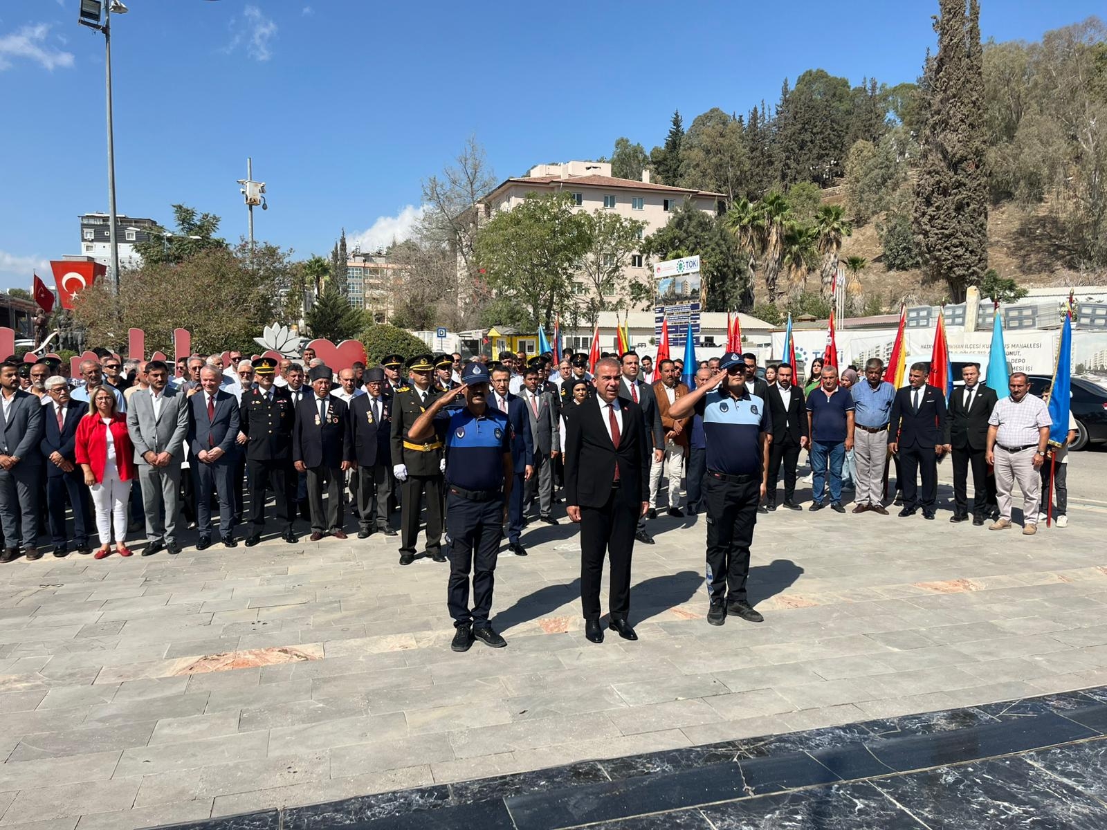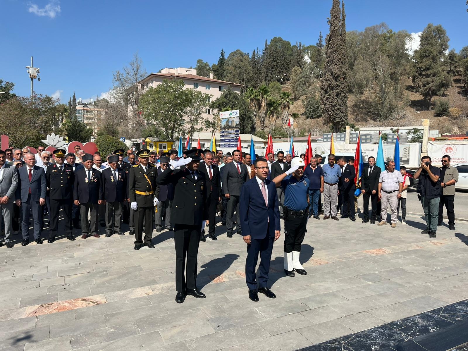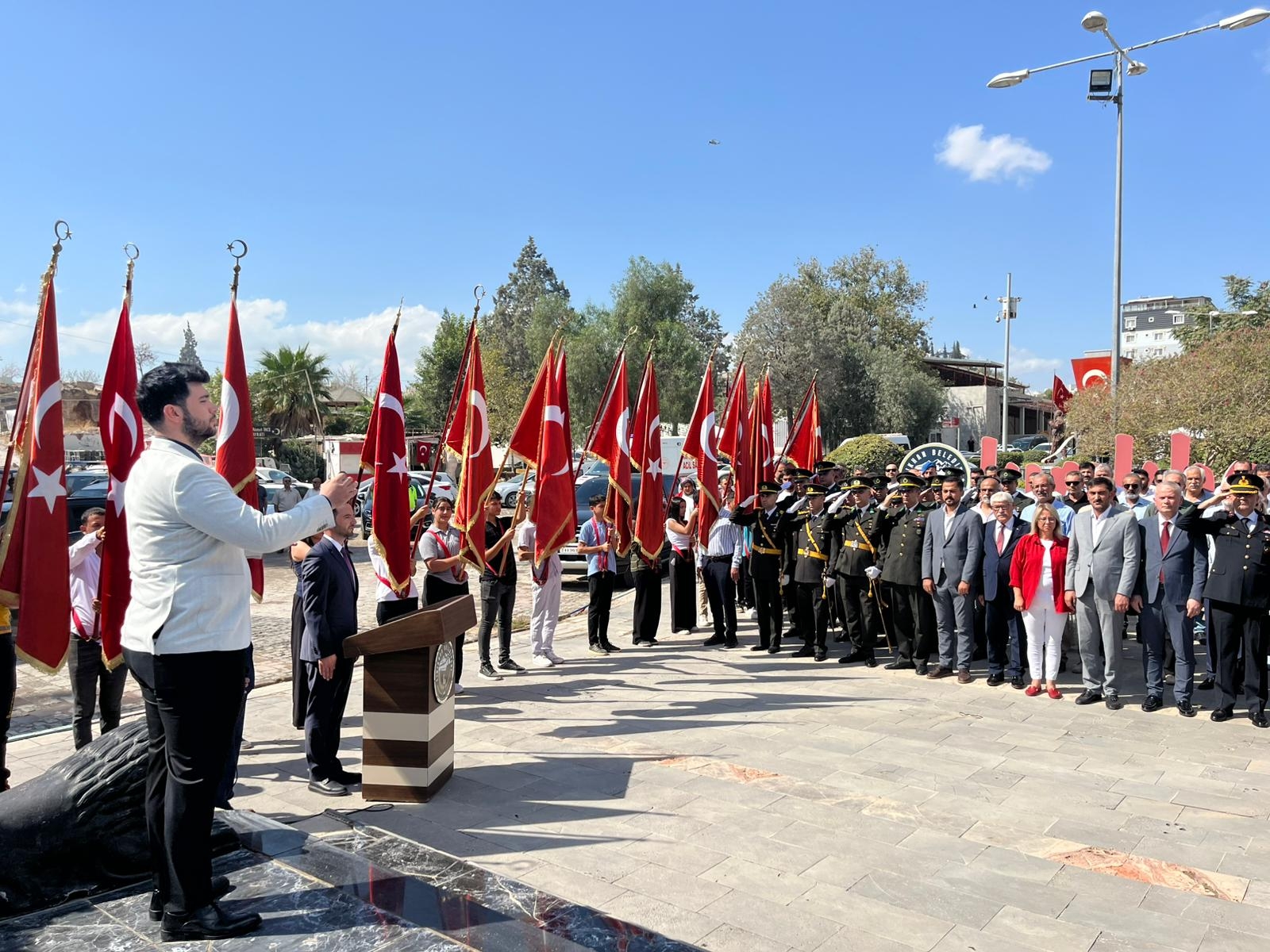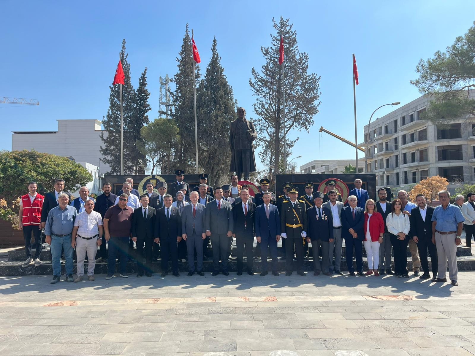 30 Ağustos Zafer Bayramı'nın 103. yıl dönümü kutlamaları kapsamında Kaymakamımız Sayın Ayhan AKPAY'ın başkanlığında ilk olarak Atatürk Anıtı'nda çelenk sunma töreni gerçekleştirildi. Çelenk sunma törenine ilçe protokolü ve İlçe Millî Eğitim Müdürümüz Sayın Kemal CEYLAN da katıldı. Çelenk sunma töreninin ardından ilçe protokolümüz tarafından Şehitlik ziyareti gerçekleştirildi. Şehitlerimizin ruhu için Kuran tilaveti yapıldı. Kuran tilavetinin ardından ise ilçe protokolümüz şehit annelerimizle sohbet etti. Şehitlik ziyaretinin akabinde ise Kaymakamlık Makamı'nda gerçekleştirilen tebrikat töreninde Kaymakamımız Sayın Ayhan AKPAY; protokol üyelerinin ve İlçe Millî Eğitim Müdürümüz Sayın Kemal CEYLAN'ın tebriklerini kabul etti.